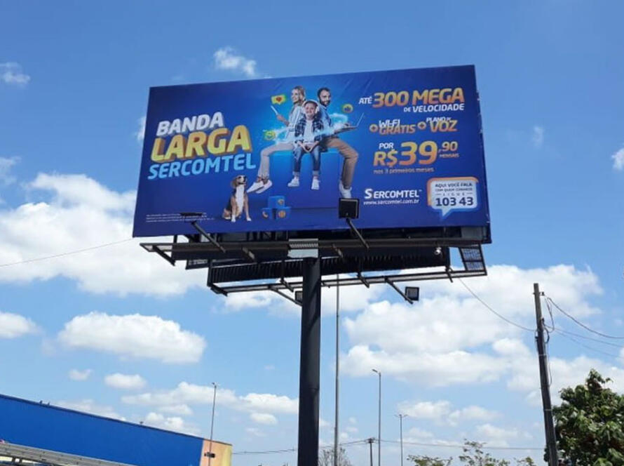 Impressão de qualidade feita com equipamentos modernos para produção de grandes formatos em materiais como adesivo, lona e tecidos especiais.
